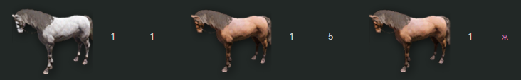 Ставила шестерку белую с косичкой(которая быстрая самая 340) с дичкой 5й -005,дало белую кобылу 5ю 2 из 2х,больше не стала проверять хотя и восстановила скрещивания.