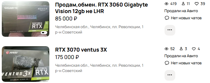 Я на шару при выходе 30 серии заимел в днсе 3070 за 56к, когда их было купить нереально изза майнинга. Сделал бронь, пришла смс, поехал в магазин, и мне ее выдали. Через пару месяцев начался пик майнинга, я с дуру выложил ее рофла ради на лохито за 175, она 2х часов не пролежала))) Далее я выхватил в ситилинке за 40 3060 12gb не LHR, и свапнул на 3060ти LHR с доплатой мне в 50к. В итоге в период за пару месяцев я фактически бесплатно заимел 3060ти и порядка 150к