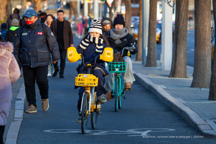При этом прокатных велосипедов очень много, они буквально на каждом углу. В отличие от электросамокатов, они гораздо предсказуемее. Арендовать можно через приложение. Также стоит отметить, что в Пекине много велодорожек. Так что, если нужно куда-то доехать на двух колесах, это можно сделать. Чуть медленнее, чем на электросамокатах, но гораздо безопаснее для себя и окружающих.