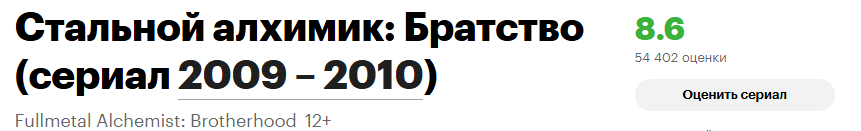 стальной алхимик, который по сути во всем мире считается культовым, на этом сайте на дне, потому что там его нельзя посмотреть в местных папрашных кинотеатрах. а у боевого континента 100к оценок, когда во всем мире, на любом другом сайте, она на дне всех списков