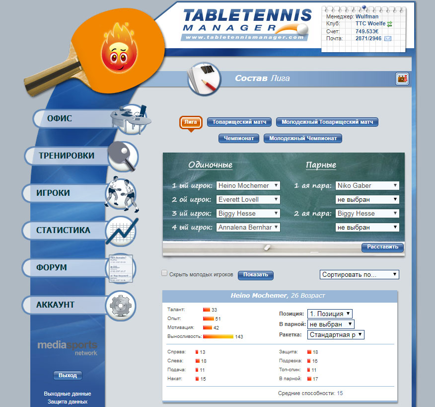 Я разработал небольшую игру для любителей настольного тенниса и с удовольствием хочу Вам ее представить. Речь идет об игре Table Tennis Manager– многопользовательская онлайн игра (Massively Multiplayer Online Game), в которой Вы можете создать свой клуб, как менеджер управлять его финансами и улучшать профессиональные навыки своих игроков, чтобы попасть в Высшую Лигу. Здесь вы можете просмотреть игру и играть бесплатно: https://ru.tabletennismanager.com/ Здесь маленький трейлер: Кроме того, несколько скриншотов: ![]() ![]() ![]() Надеюсь, Вам понравится! Приложение для Android: https://play.google.com/store/apps/d...en.pixcept.ttm С уважением, Wulfman |