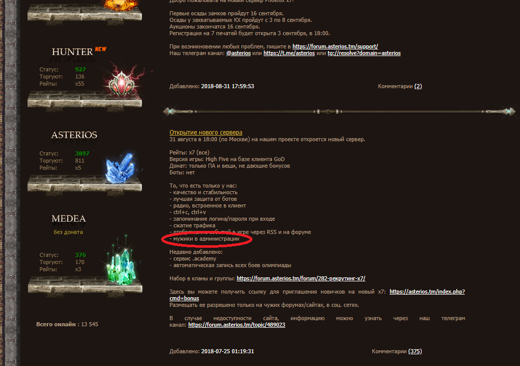 GVE - это не просто PVP сервер, а новый виток развития Lineage II в целом. Мы используем новый клиент Classic, что выгодно отличает проект от иных PVP серверов базирующихся на клиентах HF или прости Господи Interlude. Высокий FPS, стабильная работа клиента, расширенные возможности и функционал ждут Вас.