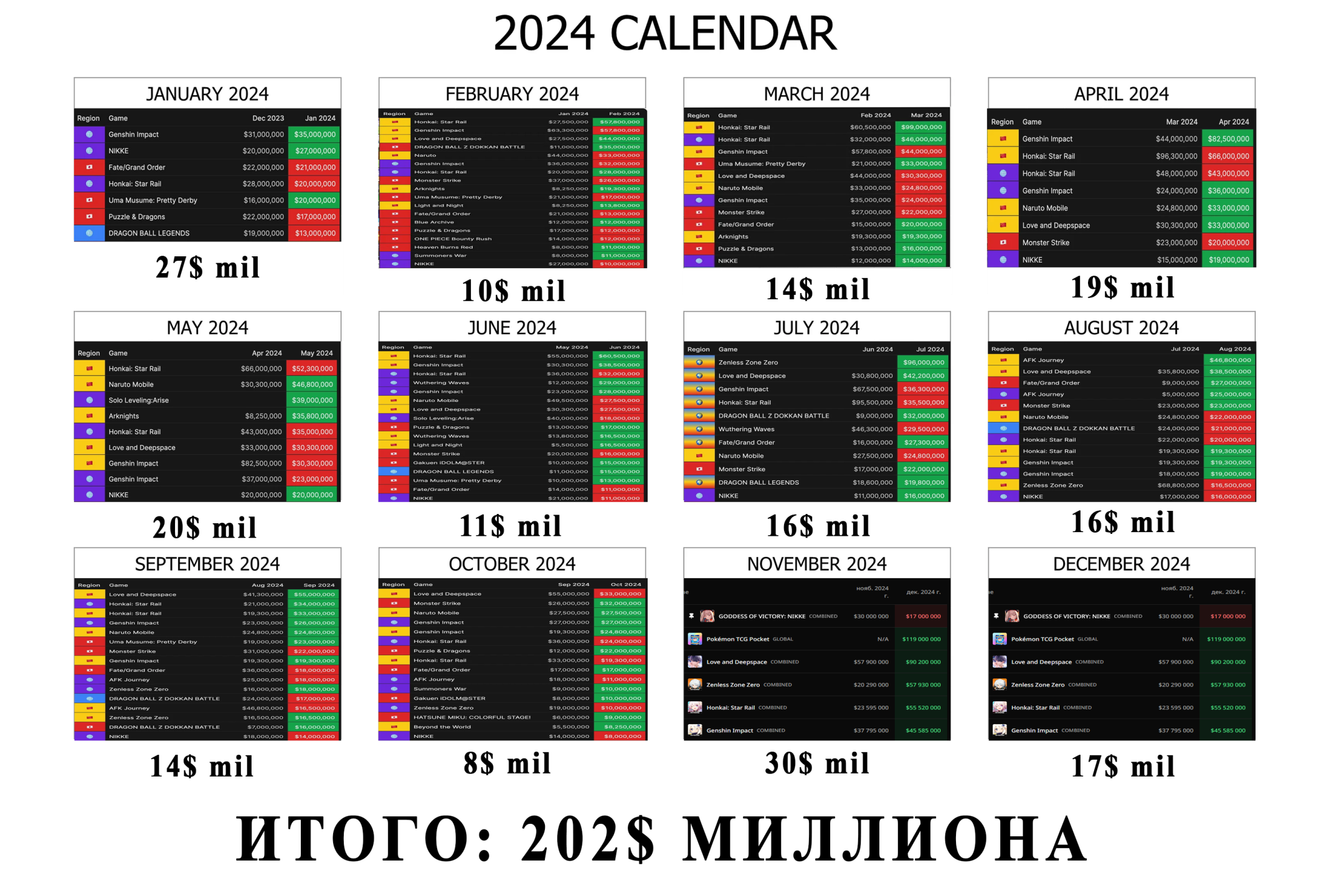 This revenue chart provides estimates for mobile platforms only, sourced directly from SensorTower. Revenue generated by the PC and Console versions of games, where applicable, are not included. As Google Play does not exist in China, estimates published in regards to China's Android revenue data are established using a multiplier based on the country's iOS revenue. The chart published here is accurate as of the time of posting, but SensorTower may revise or adjust their estimates throughout the month. Numbers on the revenue website revenue.ennead.cc may be subsequently updated to reflect those changes as necessary. Estimates do not take into account development costs and other expenses, and therefore do not directly translate to "profit" for the developers and/or publishers. While these estimates can be useful for gauging trends, they are not intended to be taken at face value as definitive revenue figures.