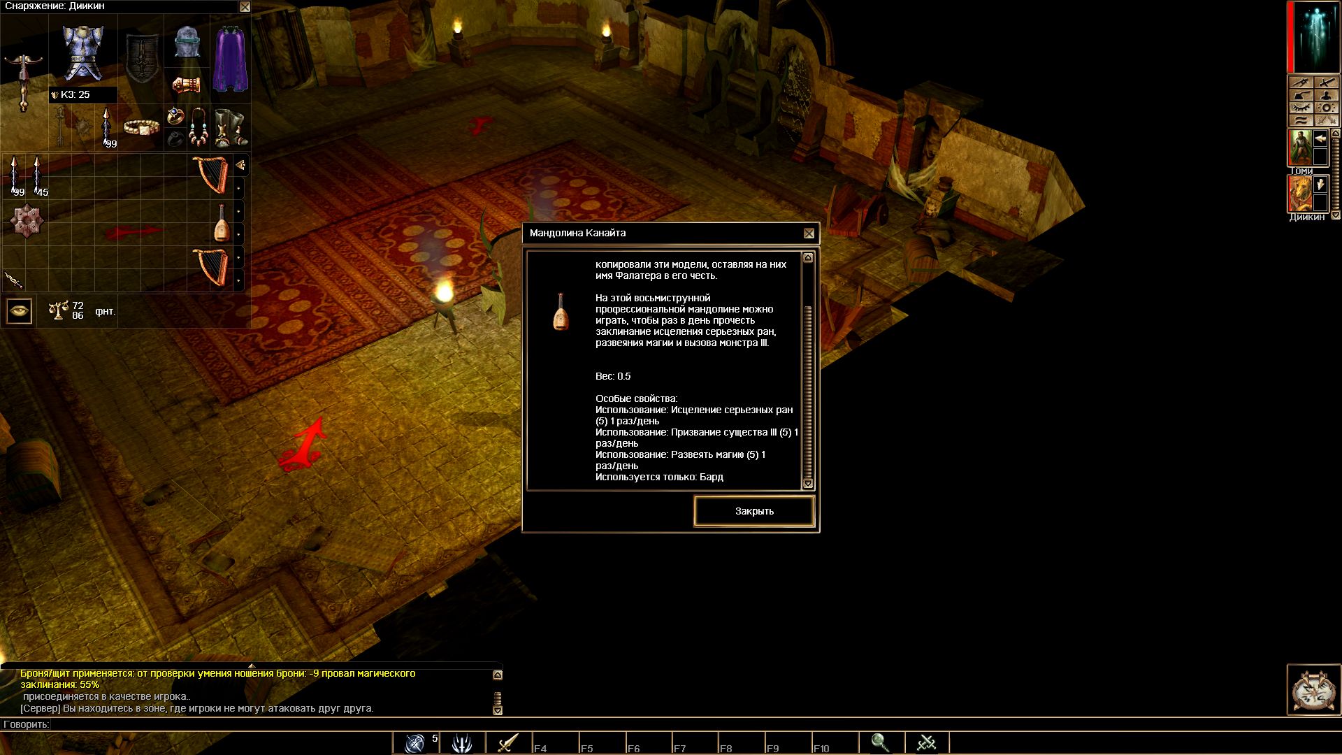 Больше похоже на неустраненный баг, т.к. оружие и армор он одевает, если они подходят под его класс, а вот арфы и жезлы никак. Кстати, в NWN 2 бард - сопартиец без проблем пользовался арфами и жезлами.