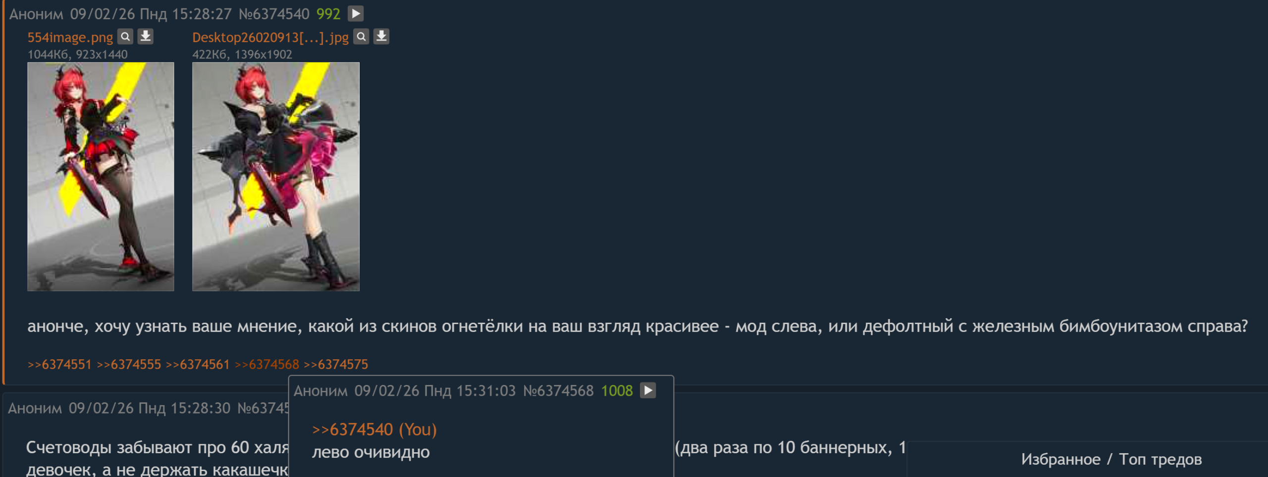 я спросил анонов что они думают по поводу дизайнов этих 2 скинов, большинство за мод скин, и абсолютно все ненавидят этот тазик железный вокруг талии огнетёлки