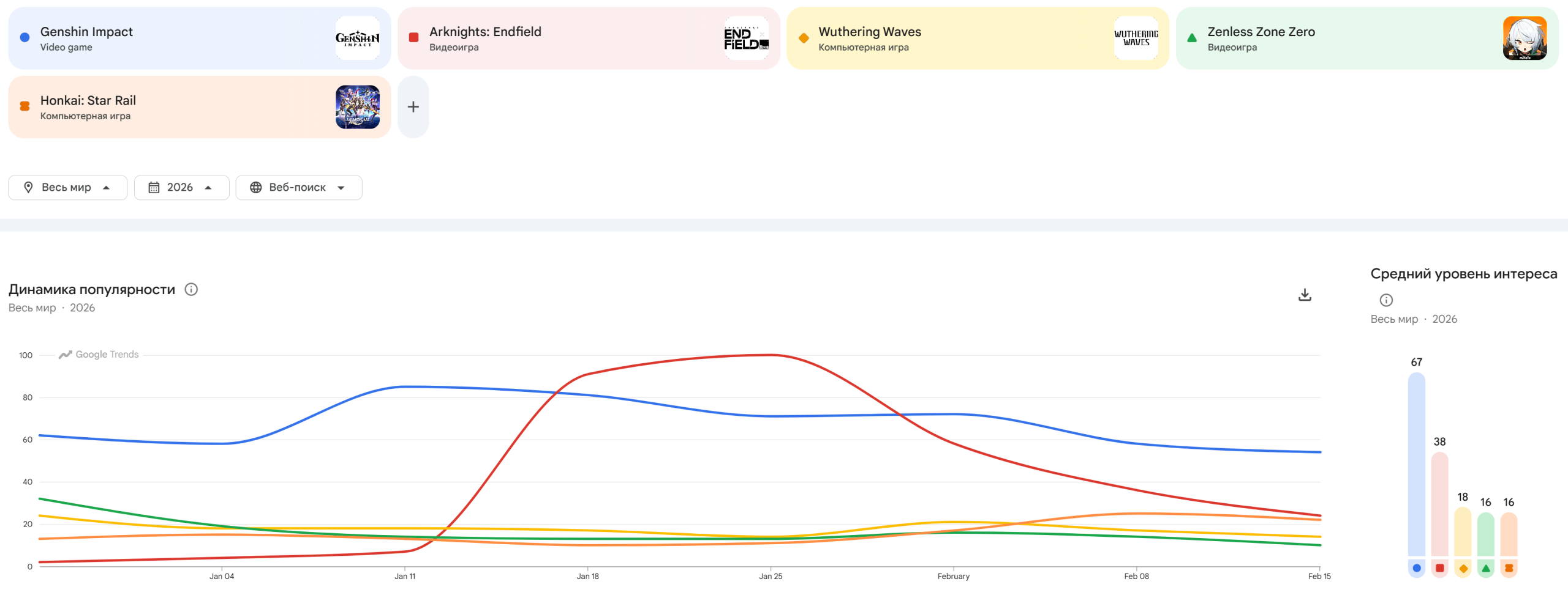 уже в феврале у народа интерес упал ниже геншина, вуву не вставил неспроста, ибо ещё не упала ниже вувы, но точно упадёт, дайте ещё 1-2 месяца нормисам играющим по 30 минут в день, интерес пока временно немного выше вувы благодаря новизне и хайпу, падение интереса прямая корреляция с заработком - вот на такую же величину и упадёт заработок