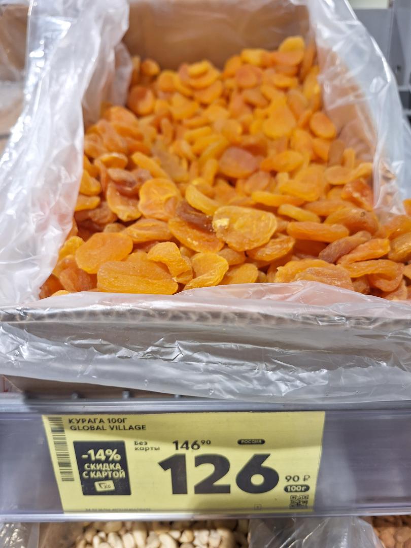 Вот курага в Пятёрочке, совсем охренели, 1300р\кг!