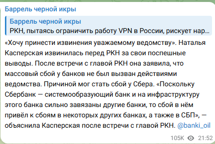 Уже с этой бабой - Касперской провели беседу и она грит во всем ошибалась, а РКН - это боги и их слово - закон.