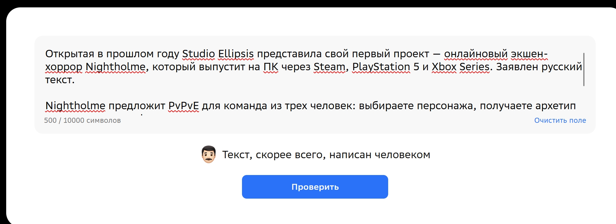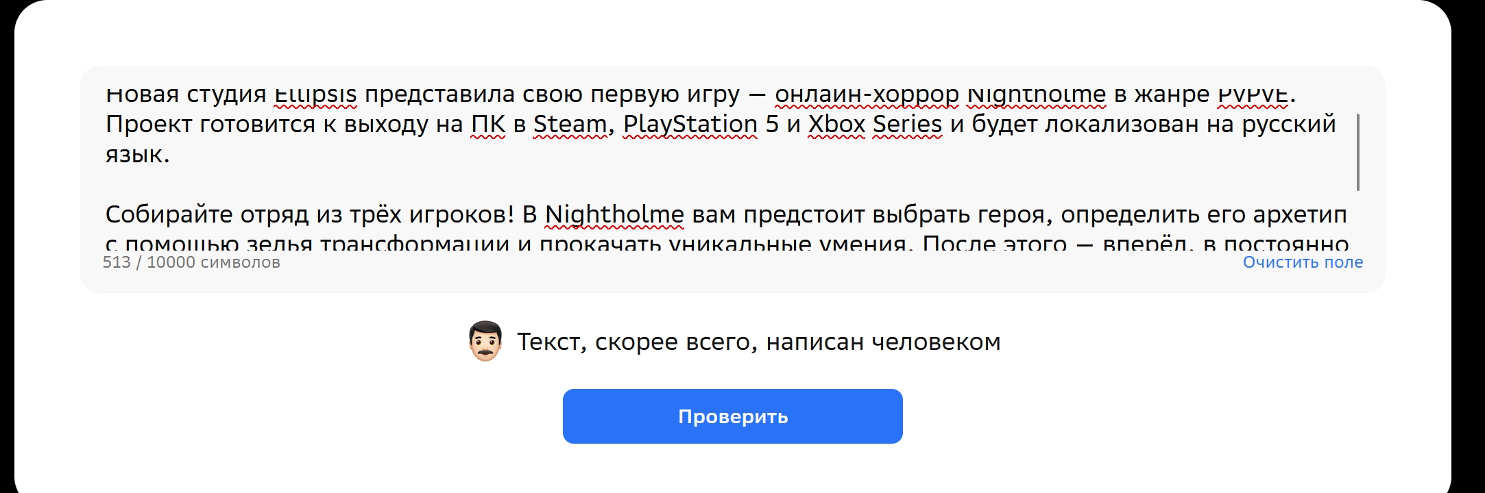 возможно своё, а возможно просто использует сберовскую хрень для проверки текстов