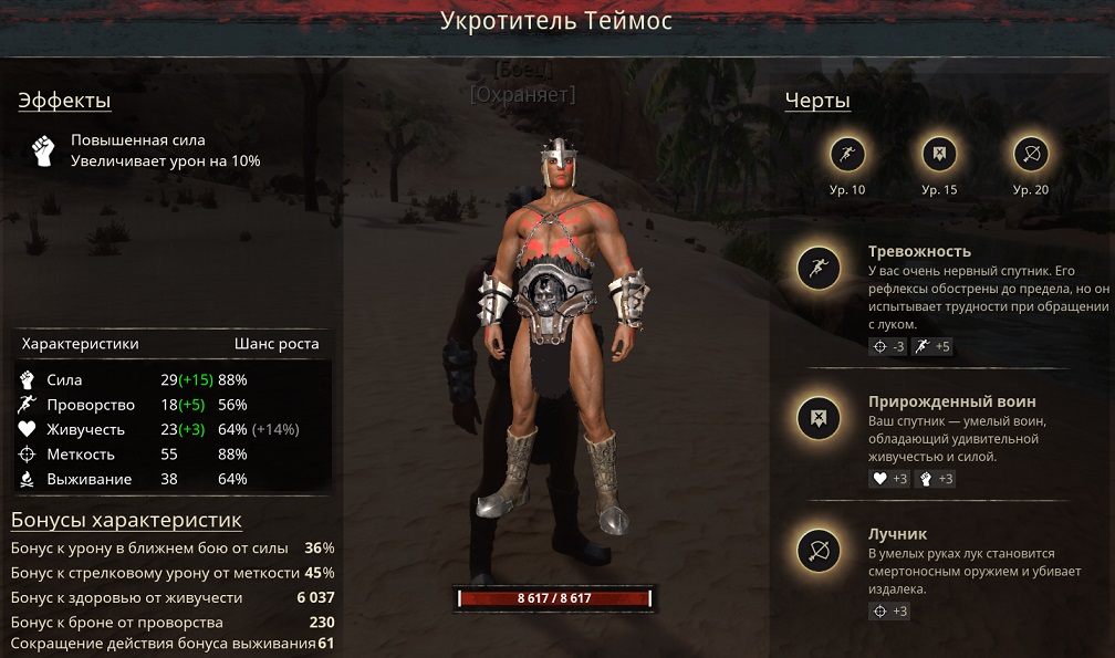 А самое главное что Теймос это идеальный боец для охраны который прокачивается до 10 лвл за пару часов на камнерогах и заменяет ещё и лучника,короче универсал