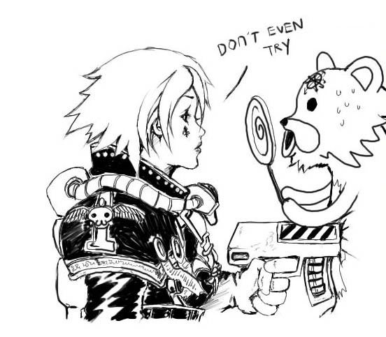Во взгляде Энгри сочетались презрение с удивлением: «Срущие ***-соски, Скаут, несмотря на то, что твой брат Ультрамарин позабавился уже с толпой, он, ****ь, никогда не присылал их тебе? Этот громовой засранец очищает каждую ночь чертовой недели по новой ксено сучке!»