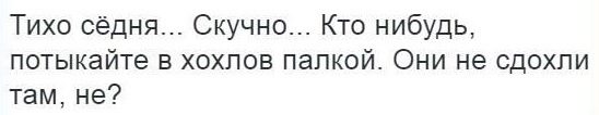 Самых же смелых и отважных, с атрибутами и заточенными випонами мы приглашаем на ХБ к себе в гости. Мы порядком заскучали без вас, за время задрачивания квеста. А ведь секрет нашего успеха - регулярное употребление рисовой кашки. СЛАВА УКРАИНЕ!