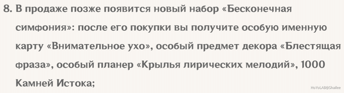 С другой стороны, в патч нотах все еще есть пункт о скором поступлении в продажу пака с планером, который называется не так, как тот, что нам раздали, и не все люди интересуются датамайном. Не было никаких сообщений от миХоЕ, что они отказались от идеи продать этот пак. Так что лично я все еще буду ждать в продаже пак с этим другим планером и 1000 примогемами, если появится - может даже куплю, годовщина все же. Если пака не будет в магазине до следующей обновы - это будет самый свежий случай скама от МиХоЁ.