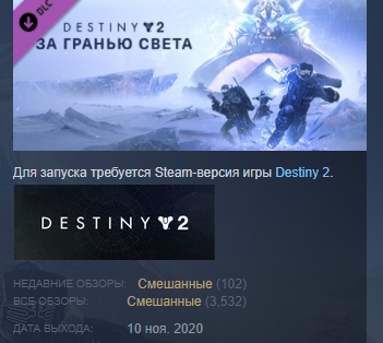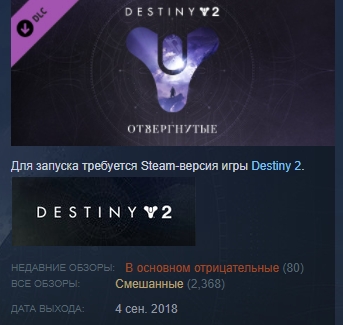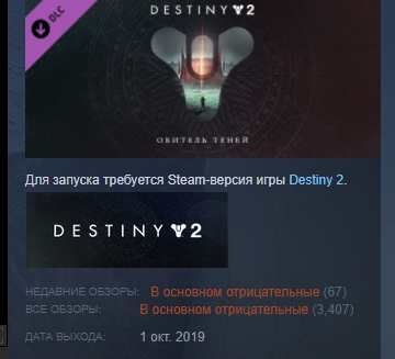 От аддонов отдельно оценки собирать, ну понятно. Вот только, недавние - это за последние 30 дней. И внезапно, за последние 30 дней у игры 9к+ обзоров и оценка 79%. А у БЛ, 48% канеш, но обзоров всего 109. Но не грусти, вдруг в этот раз злые дяди не заставят миллионы игроков заплатить ужасной Банджи за следующий аддон и сезоны.