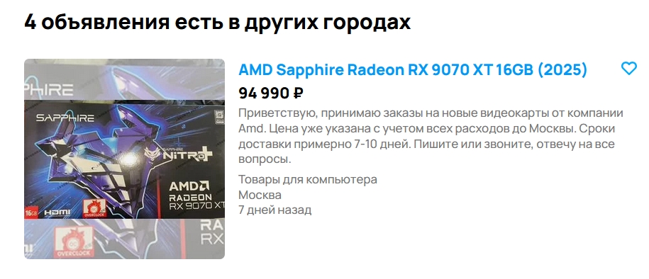 Видеокарта GIGABYTE AMD Radeon 9070 XT AORUS ELITE — 119 999 рублей.