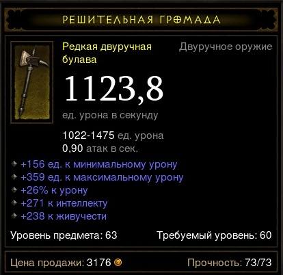 Вернемся к выбитому тобой щиту. Силы меньше, чем на Штормшелде, алл резов нет вовсе, блок и крит не на максимальном для желтых щитов уровне (9 и 10% соотв.), общий блок всего 25%, для желтого щита возможно больше. Поэтому я бы сказал, что его максимально возможная цена составит 5 (до 15) м золотом. Да и то, лично я бы предпочел штормшилд с меньшим критом, блоком, но алл резами, абсорбами и большей силой.