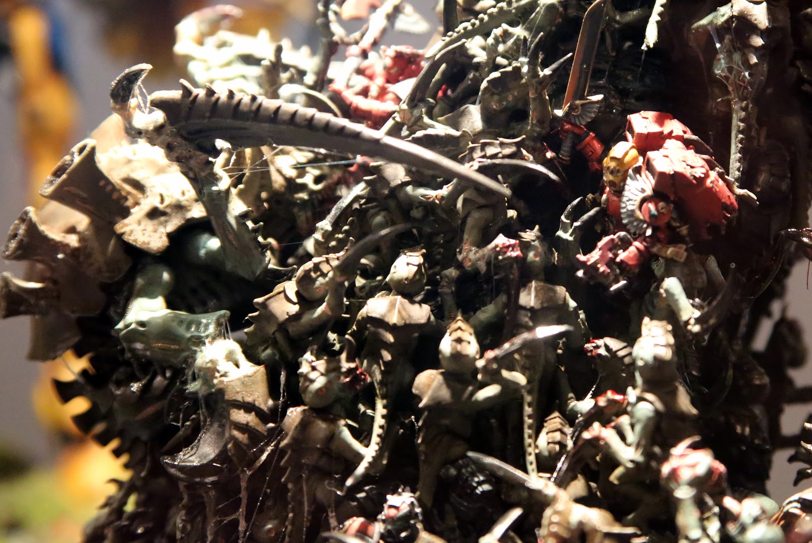 Из олова. Это исторически, "оловянные солдатики". Олово плавится при малой температуре и им легко заполнять форму - не надо создавать какое-то добавочное давление, чтоб вдуть в прессформу. Из минусов - дорого, чемодан с армией набитой оловянными миньками весит заметно больше чем такой же пластиковый/смоляной. Лично мне метал не нравится потому что с него слетает краска гораздо быстрее чем с пластика. Какой бы не был хороший грунт.