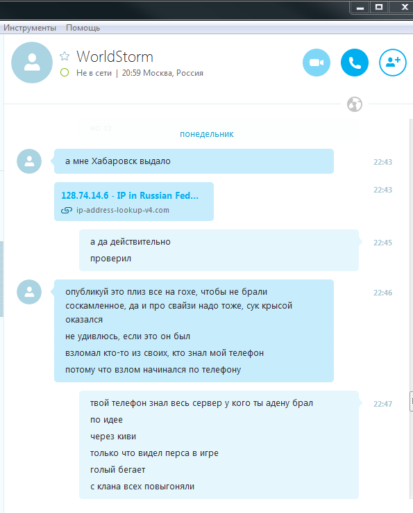 Короче, почитал я щас диалоги на скринах и сравнил их со своими диалогами переписки в скайпе с Килджоем и Сагой. Всё склоняется к тому, что переписка больше сходится с Сагой. Все предложения начинаются с маленькой буквы при использовании запятых, также используются простые, но грамотно связанные слова. Киля же обычно пишет в разнобой, тоже с маленькой буквой и забивает xyй на запятые, но шанс, что Киля примерно 40%, Сага 60%. Дело раскрыто!