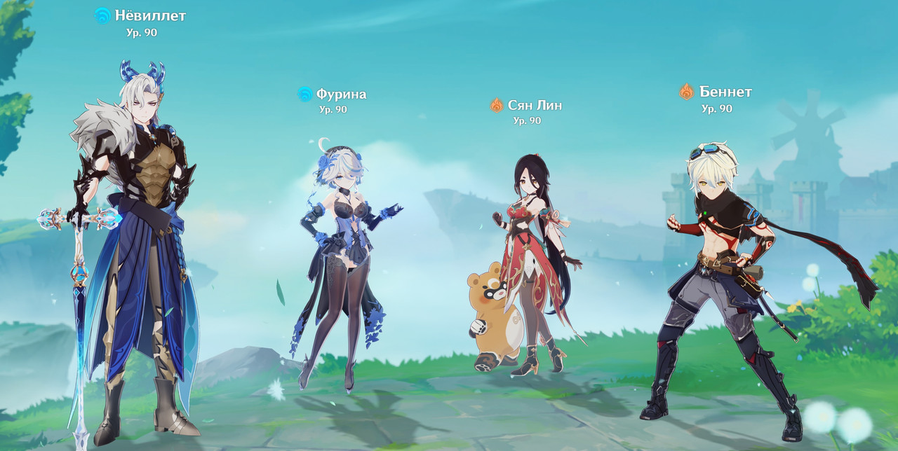 вообще я могу кого угодно в пачку дилюку поставить и гнуть всех направо и налево, на мою пачку сильно не ориентируйся, я просто дилюку стандартную мондштадтскую хотел сделать (и да я в курсе что синцю из ли юэ), конечно я мог и 3 любых тянки поставить, тебе нада дилюк, фишл, сянлин, барбара делать со старта любой нубас их достанет вроде бесплатно по сюжету дают...а беннета ты хуй днём с огнём сыщешь, я помойму когда начинал играть месяц отыграл и не получил ничего и никого, только банер ждать.