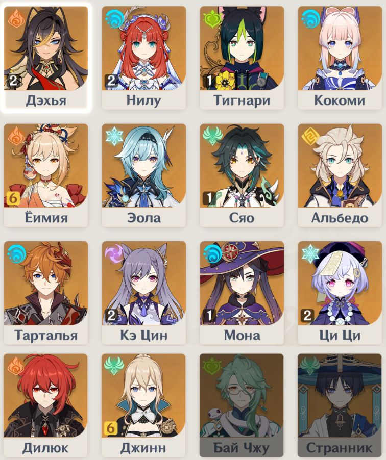 Из списка активно юзаются только Ёма и Нилу; иногда в бездне Сяо и Джин (вместе)