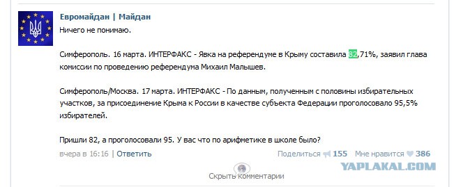 Далее. Крым как бы словом и делом намекает Юго-Востоку, что за свои права и свободы можно и нужно бороться. Ты согласен, что Федерализация и закрепление прав русскоязычных может спасти твою страну? Это если ты за трудемократию, а не за коричневую идею "одна страна - одна нация".