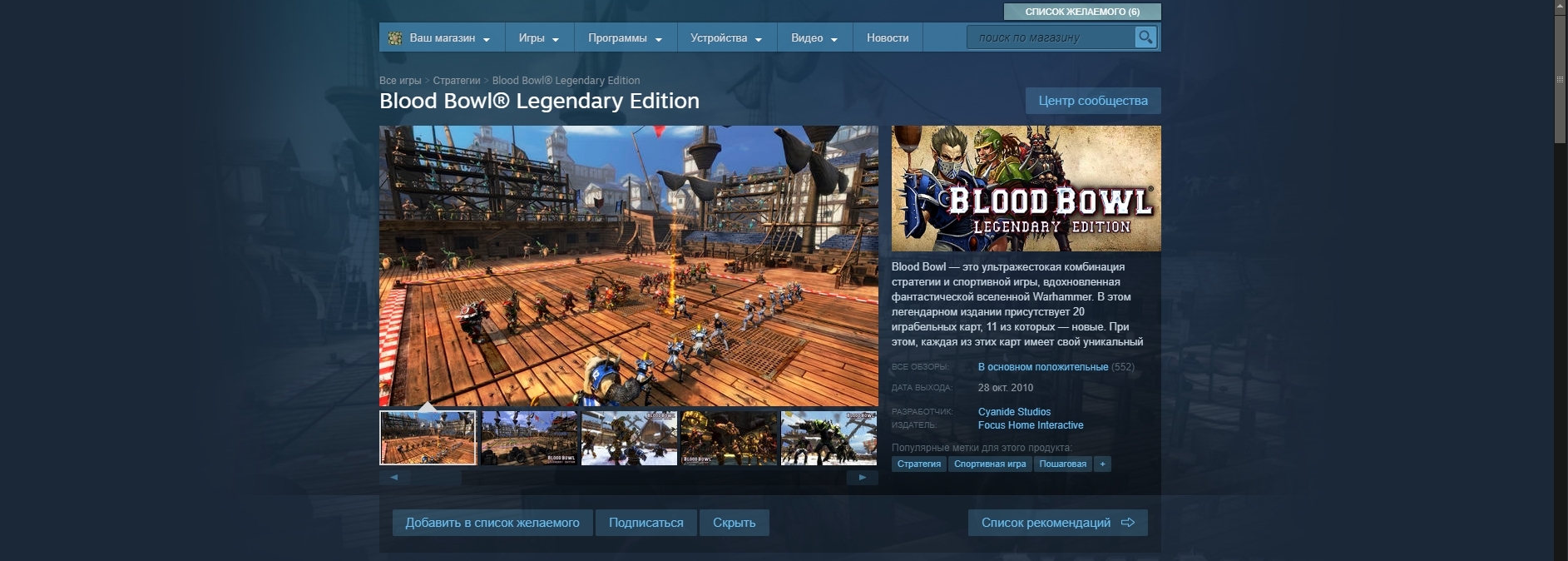 Заглянул в жанр "стратегии" и удивился тому, что там делают игры типа Blood Bowl. Расскажи какая крутая стратегия эта игра, я послушаю