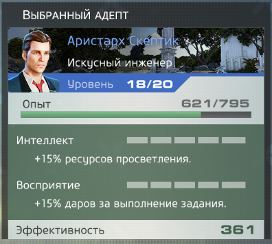 У каждого типа адептов есть 2 особые характеристики, которые и дают определенные бонусы. Самые полезные, на мой взгляд, бонусы это: Харизма (бонус к получаемым последователям, есть у Эмиссара и Проповедника) и Телосложение (снижение сложности заданий, есть у Мистика и Храмовника). Но я все же предпочитаю держать хотя бы по одному адепту каждого типа, чисто для разнообразия.