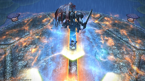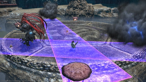 Основы сражения В Extreme версии присутствуют все атаки из Normal версии, но появилось и несколько новых. Главным отличием является то, что после ультимативной атаки босса на арене останется след от меча до самого конца сражения. Линия будет проходить от юга до севера, и при попытке перебежать через неё игрока будет засасывать внутрь. Долгое нахождение в этой области арены убьёт. Разбор всех фаз сражения Первая фаза В начале сражения босса необходимо отвернуть на север, в то время как все остальные члены группы стоят позади него. В течение сражения босс будет использовать против танка атаку Assail, которая наносит довольно серьёзный урон. Среди стандартных атак можно отметить Rasen Kaikyo, которая оставляет на 4 случайных игроках АоЕ круги. Одной из первых механик будет Churning. После того, как босс прокричит «Rise, rise to the occasion!» вокруг появятся небольшие пузыри, а игроки получат статус Churning. Когда время действия этого статуса будет подходит к концу, не двигайтесь и не совершайте никаких действий. В противном случае, вы получите урон и дебафф Lightning Resistance Down. ![]() Далее, следует механика Yata No Kagami. Босс проговаривает фразу «The seas part for we alone!» и на одном из игроков появляется красная метка. Как только она пропадёт, босс атакует игрока и отталкивает его. В этот же момент, единственным безопасным местом от АоЕ на арене будет тот путь, по которому оттолкнулся игрок, когда босс его атаковал. Обычно, эта механика сопровождается атакой Brightstorm, когда помеченный красной меткой игрок затем должен вернуться к группе, чтобы разделить урон от второй метки. ![]() И, последнее, что босс использует перед ультимативной атакой - это механика Dark Cloud. На арене появляются чёрные облака, которые выстреливают огромным линейным АоЕ. Попадание в такое АоЕ наносит огромный урон и оставляет на персонаже статус Paralysis. Когда здоровье босса опускается ниже 76%, он стартует ультимативную фазу. Ультимативная фаза - Ame-No-Murakumo Босс пропадает с арены и появляется за её границей в виде огромного духа. Затем, он достаёт из воды легендарный меч Ame-No-Murakumo и готовиться нанести удар. В этот же момент на арене появляется мигающая точка, куда необходимо встать одному из танков. Как только танк принял позицию, ему надо будет сделать QTE (Quick Time Event) в течение 30 секунд, пока остальная группа, стоя рядом с танком, должна уничтожить меч. Тем временем, второй танк направляется на Северо-Восток арены и ловит электрические шары, которые начнут появляться по часовой стрелке. Как только первая атака босса будет отражена, танк, который стоял в точке, отступает, и на его место встаёт танк, который ловил шары. По сути, танки меняются местами, а в остальном фаза не отличается ничем. Отразив вторую атаку, бегите на левую половину арены, и вылечивайте входящий урон от ультимативной атаки. Финальная фаза В результате ультимативной останется след в виде линии, которая проходит через всю арены. Находиться на этой линии долго нельзя, так как она медленно засасывает вашего персонажа внутрь, и в конечном итоге убивает. Для начала, вся группа передвигается на левую часть арены, и становится ближе к северу. Первой новой механикой будет Stromsplitter. Этот удар от босса оставляет на танке дебафф Slashing Resistance Down, что не позволит этому игроку дальше держать урон от босса. В момент применения этого умения, второй танк должен перехватить агро босса с пом
